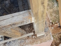 August 2025 | Die alte Fassadenverkleidung wurde vom Bauherren entfernt und das darunterliegende Fachwerk freigelegt. Nach einer gründlichen Begutachtung habe ich beschädigte Holzteile wie Schwelle und Ecksäule fachgerecht ersetzt – und dabei so viel wie möglich von der bestehenden Ausfachung erhalten, um Zeit und Kosten zu sparen. So bleibt ein Stück Geschichte bewahrt, während das Haus für die Zukunft wieder solide dasteht.