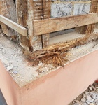 August 2025 | Die alte Fassadenverkleidung wurde vom Bauherren entfernt und das darunterliegende Fachwerk freigelegt. Nach einer gründlichen Begutachtung habe ich beschädigte Holzteile wie Schwelle und Ecksäule fachgerecht ersetzt – und dabei so viel wie möglich von der bestehenden Ausfachung erhalten, um Zeit und Kosten zu sparen. So bleibt ein Stück Geschichte bewahrt, während das Haus für die Zukunft wieder solide dasteht.