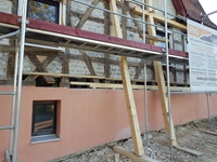 Mein eigenes Gerüst habe ich natürlich auch selbst gestellt. So habe ich die Arbeiten flexibel und zügig ausführen können – vom ersten Balken bis zum letzten Brett alles aus einer Hand.